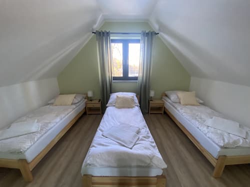 W kuchni znajdziesz: lodówkę, płytę indukcyjną, piekarnik, mikrofalówkę, czajnik bezprzewodowy oraz kolbowy ekspres do kawy. Ponadto wszelkie niezbędne naczynia, garnki i sztućce oraz zestaw do grilla. Do dyspozycji gości są 2 TV oraz Wi-Fi.